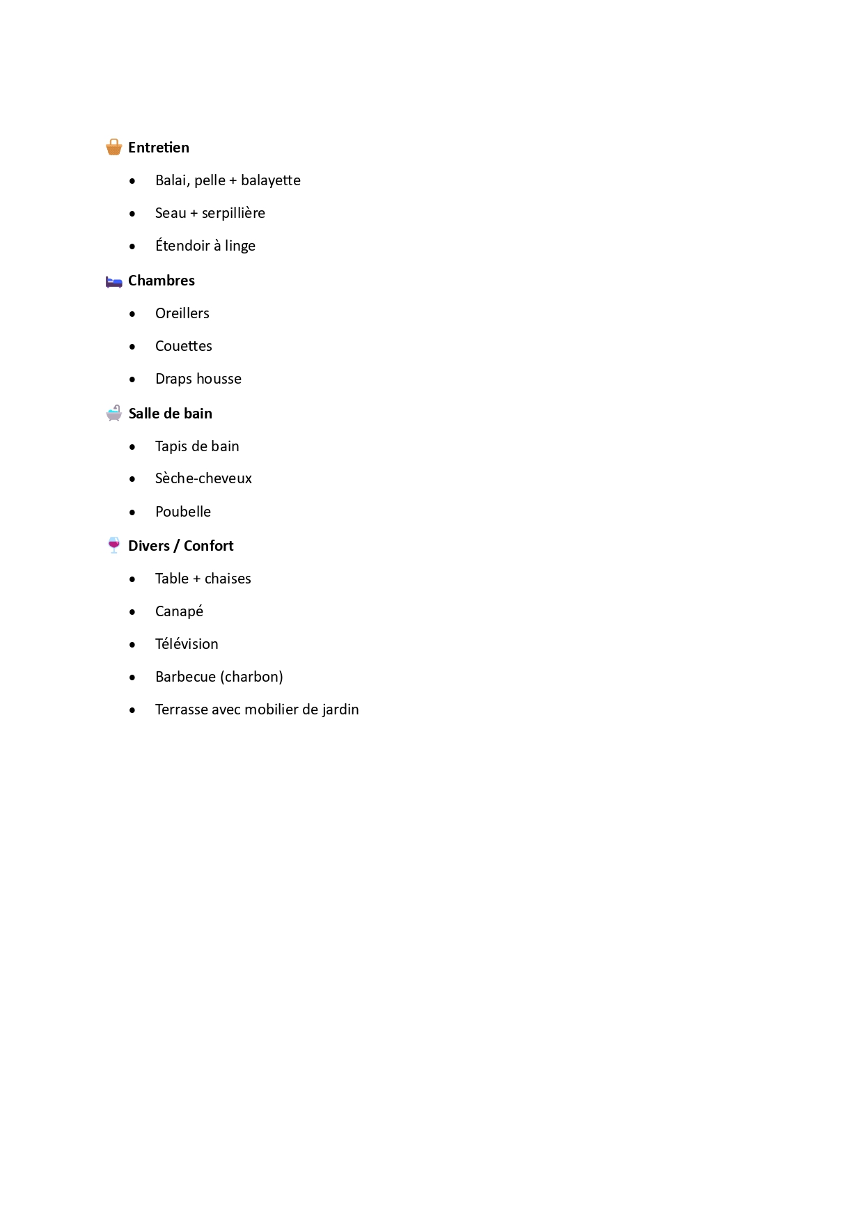 Votre bien-être est au cœur de nos envies dans nos chalets. Pour profiter de vos vacances, rendez-vous sur votre terrasse couverte ! Vous pourrez vous y relaxer. Les animaux sont interdits. Possibilité de louer le linge de lit et serviettes de bain.